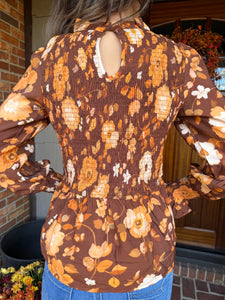Sweet, timeless, and effortlessly romantic — Eloise Floral Ruffle Top features a delicate floral print with a flattering smocked bodice and soft peplum hem. The ruffled mock neckline and puff sleeves add the perfect feminine touch, making it a dreamy piece for any season. Pair it with denim or a midi skirt for that effortlessly put-together look.