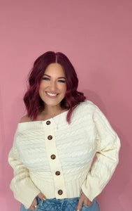 Cozy meets effortlessly chic in the Sweet Escape Off-Shoulder Knit. Featuring a soft, lightweight knit and a flattering off-shoulder neckline, this sweater is finished with a functional button-down front for subtle detailing and easy styling. Perfect for pairing with jeans, skirts, or tailored pants, it offers a versatile, feminine silhouette that transitions seamlessly from casual days to stylish evenings. A must-have piece for boutique collections seeking timeless, flirty, and comfortable staples.